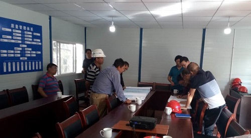 三个小时后外科楼的基坑I、II、III区的基槽查验完成。随后在建设单位领导的带领下,参加验槽的人员在施工单位会议室进行基坑验槽结论专题会议。