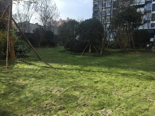 三栋高层在low-e玻璃窗及玻璃幕墙的映衬下显得大气、时尚。三栋商业在高层的衬托下显得较为娇羞。园区的绿化也初步形成,蓝花楹、朴树、银杏、桂花等早已各就各位,在阳光的照射下格外生机动人。