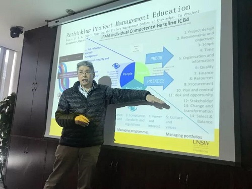 2018年11月27日,集团组织生产中心、技术中心、管理中心及造价子公司部分员工于先锋会议室进行培训,本期晨越大讲堂邀请的嘉宾Dr.Raymond Young来自澳大利亚,是悉尼大学MBA,澳洲麦考瑞大学社会科学类博士,他此次分享的主题为“PM certification wrong content, wrong reason, wrong way”。