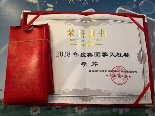 2018年,集团新设“2018年度擎天柱”奖,此奖共设两名,评判依据为2018年7月至12月底的考核数据及个人自评,大奖得主至少具备以下三条件:1、行正名端,自带正能量;2、谙熟专业知识,独挡一面,擅长所在领域的专业战斗;3、擅长识人、带人、用人,并组织他们并肩战斗。李芹凭借过人的才干和能力荣获此项殊荣。此后,同事们都戏称她为“擎总”。