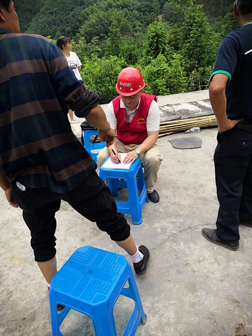 何海波:“刚到双河镇政府搭建的临时办公帐篷,还来不及放下行李,就接到派至笔架村核查灾损情况的任务。早已在此等候的村支书接到我们后,安排各队队长分别带领我们应急评估第二批次第三小组专家四人,奔赴笔架村各队,立即投入到应急评估工作中。”