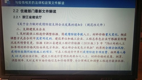 通过学习,为公司目前服务的过程控制项目、今后的结算审核类项目及结算编制类项目,起到很有利的指导作用。让工程师在今后面对疫情期间非正常材料价及人工费等费用的计取方面,有了明确的方向。