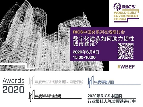 据了解,WBEF世界建筑环境论坛(Word Built Environment Forum)是由建筑环境领域专业人士所组成的全球网络,旨在搭建业内沟通与合作的舞台、设立合作标准。2020年第五届峰会暨RICS中国奖颁奖晚会将于7月30日在上海召开,为中国建筑环境的行业领袖、决策者和专业人士带来全球最佳实践和领先思想。