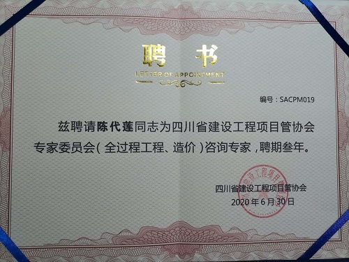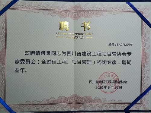 会上,协会会长车志军报告了2019年协会工作及2020年上半年协会主要工作情况,提出2020年协会下半年工作思路,并公布了四川省第一批咨询专家库专家名单。集团陈代莲、张述林、何勇被聘任为全过程工程、项目管理咨询专家,潘志广被聘任为BIM、CIM咨询专家。