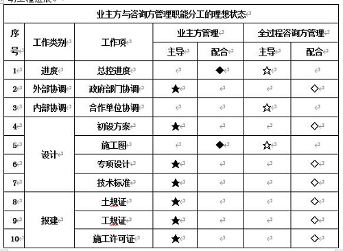 业主方与咨询方管理职能分工的理想状态