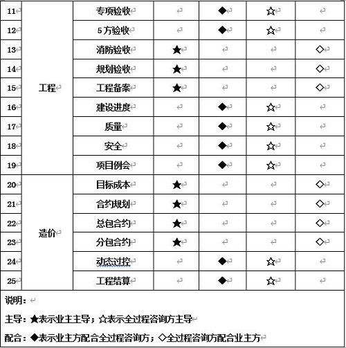 主导:★表示业主主导;☆表示全过程咨询方主导