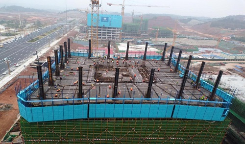 2018年6月,晨越建管集团中标双子塔项目监理服务,随后积极成立监理部进场,6月26日举行双子塔奠基仪式,双子塔项目正式破土动工。监理人员以做好“三控、三管、一协调”为己任,对地基基础阶段的抽水、清淤、换填、强夯、混凝土灌注桩一系列施工过程进行了全面监控。在桩基础施工阶段由于桩长度大、间距小,且受场地狭小限制,采用24小时旋挖作业仍然进度缓慢。现场以桩基施工和桩身完整性检测同步进行的方式,加快施工进度,在2019年春节前完成了全部桩基础施工任务。