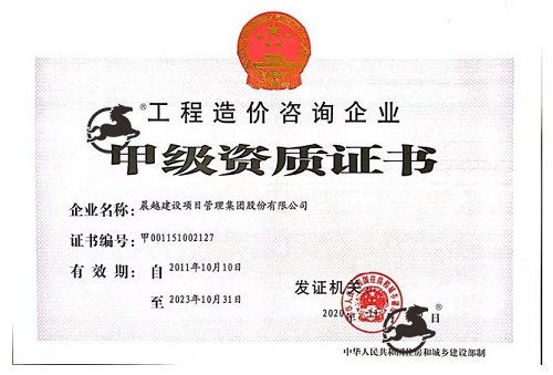 近日,晨越建管集团收到中华人民共和国住房和城乡建设部颁发的《工程造价咨询企业甲级资质证书》(证书编号:甲001151002127),有效期自2011年10月10日至2023年10月31日。