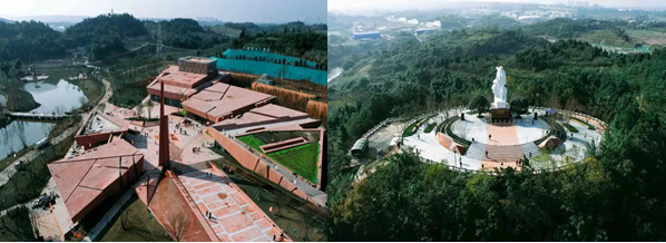 江姐故里红色教育基地是践行习近平总书记“用好红色资源、赓续红色血脉”重要讲话精神,落实四川省委、省政府部署要求的重点工程项目,规划总面积约990亩,一期实施面积415亩,新建建筑面积1.26万平方米,山体景观梳理3.1万平方米,水体整治5.4万平方米。项目主要由江姐故居提升改造、新建江姐文化艺术中心、新建园区红色教育基地三部分组成,包括4栋单体建筑,包括游客中心、演艺厅、展览馆2栋、江姐汉白玉雕塑等内容,这是一个具有重要意义的红色地标项目。