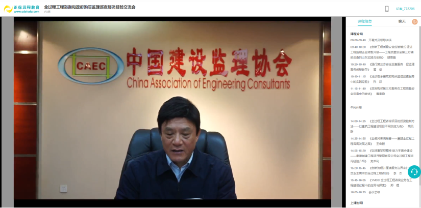 2021年12月28日,由中国建设监理协会组织的“全过程工程咨询和政府购买监理巡查服务经验交流会”以线上直播方式召开。政府有关部门主管人员、监理协会负责人、工程监理企业负责人及技术负责人、专家学者、行业专业人士等观看了会议直播。晨越建管集团党委书记、董事长王宏毅应邀做主题分享。