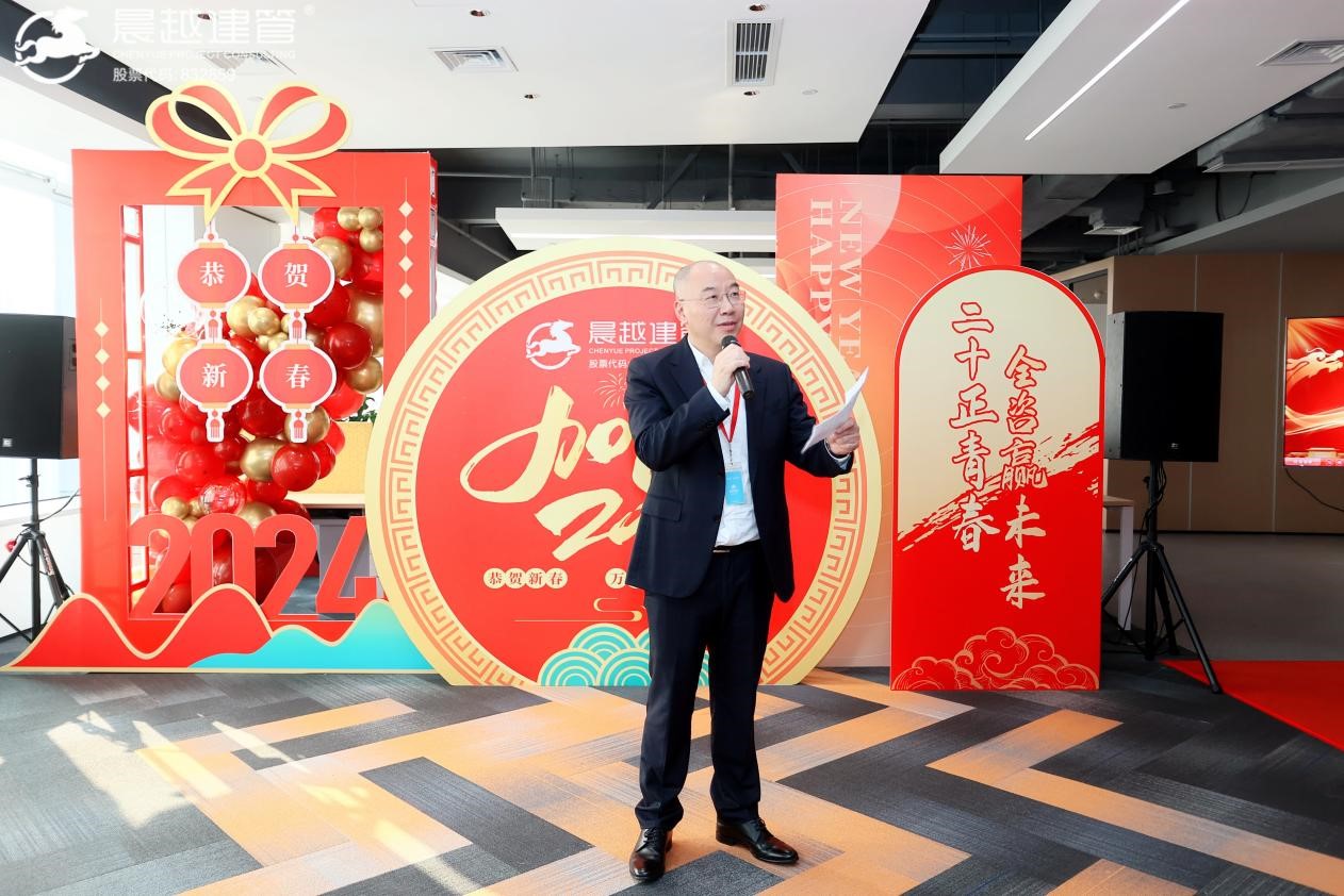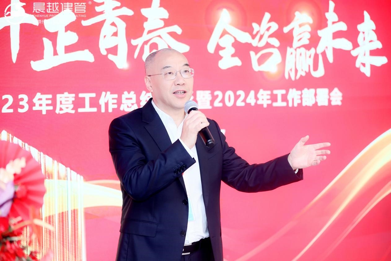 最后王董做总结发言。王董提到,2024年,集团将重点做好三方面工作,一是全咨更强、服务更优,要整合资源,凸显实力,出成果、树标杆,海外全咨市场要取得突破;二是品牌更亮、实力更强,集团二十周年开好“两会”,主编五个全咨标准,确保两项大奖,在品牌影响力和综合实力上再上一层楼;三是制度建设、育才树心,要强化内部管理,严格考核,实施“2511”计划,引进一批优秀人才、培养一批骨干人才,文化熏陶树“两心”,增强员工的责任心、事业心。王董最后提到,集团上下要保持战略定力,团结一心、迎难而上,继续扩大晨越全咨竞争优势,力争在2024年取得更大成绩!