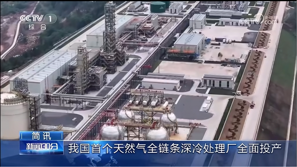 其中,中央电视台 CCTV-1 综合频道、CCTV-13 新闻频道在《新闻直播间》《新闻 30 分》《午夜新闻》等重点栏目,均以《我国首个天然气全链条深冷处理厂全面投产》为题进行报道,强调项目在乙烷等更高附加值组分开发中的突破性意义,明确其 “填补国内天然气深度处理与高值化利用完整技术链空白” 的行业价值;央视新闻客户端同步发布图文报道,光明网、央广网、中国经济网等中央重点媒体随即转载。