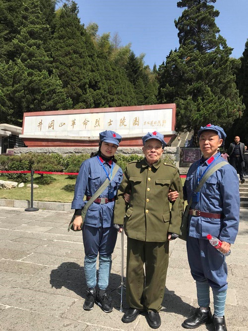 学员50多名,全程着红军服,一颗红星头上戴,红旗飘飘挂两边,过上军训生活,每天行进在井冈山峰峦叠翠之间,吸引了无数当地居民和外来散客的互动。一次晚餐后,全体学员自发在餐馆门外坐地演唱经典歌曲,抒发红色感情,得到临近商家、民众、散客的夸赞,许多人情不自禁参与合唱,争相上前握手着红军装的学员,频频合照留念,激动地表达对党、对红军、解放军的崇敬,晚会成了“军”民联欢。