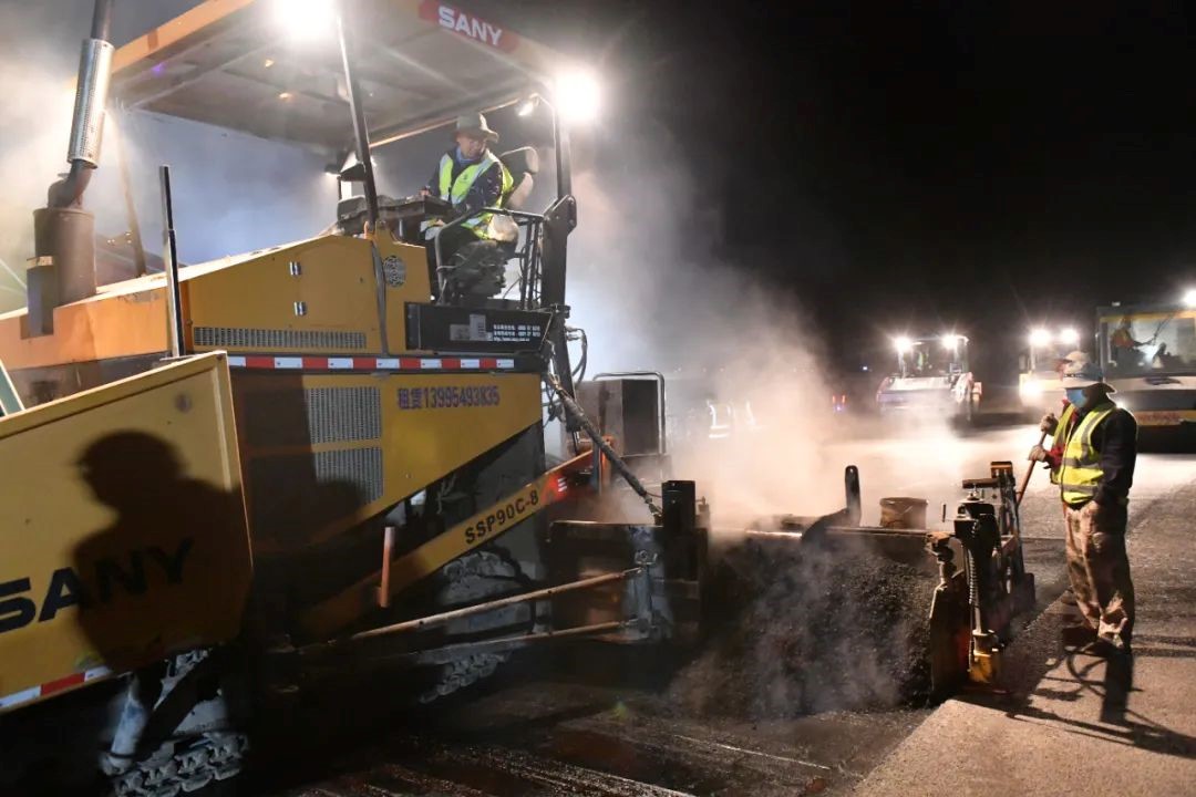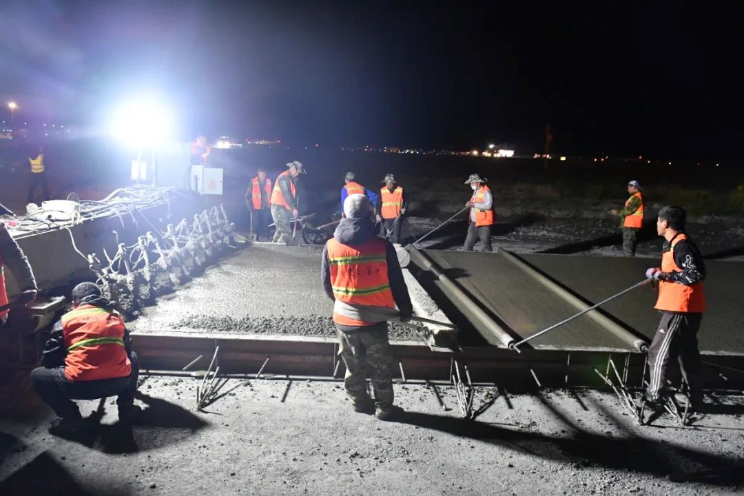 勇者逆行,令人惊叹的中国速度背后,是一位位建设者日夜兼程的无怨劳作。深夜的拉萨贡嘎机场飞行区依旧是一派繁忙的施工景象:铣刨机、摊铺机、压路机等50多辆设备车往来穿梭、隆隆运作;150余名施工人员密切配合,尽管他们的衣衫已经被汗水打湿,但没有一个人停下手中的工作,他们都在飞行区内进行施工作业,为排除飞行区隐患、确保飞行安全而争分夺秒地工作着。