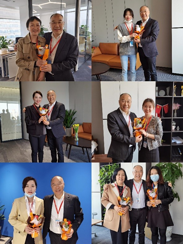一早,集团党委书记、董事长王宏毅向集团本部办公区的女同事们送上了节日祝福。一束束鲜花衬托着女同事们美丽的笑靥,一句句祝福温暖着每一位女同事的心灵。感受着晨越大家庭的温暖,晨越新女性们一起庆祝属于自己的节日。